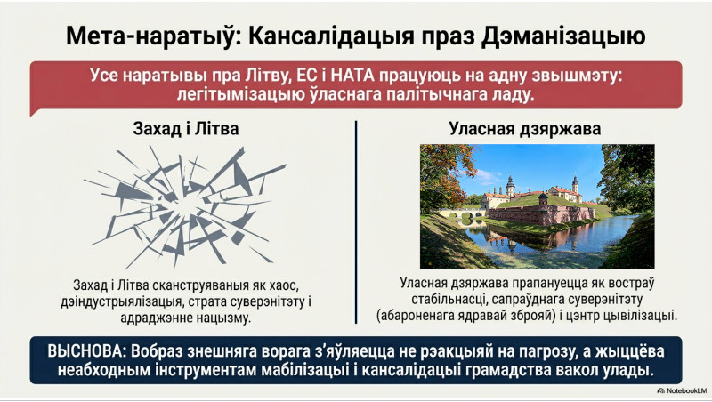 Але гэтае партнёрства не азначае палітычнай бясхмарнасці. У пачатку красавіка 2026 года прэзідэнт Літвы Гітанас Наўседа дапусціў магчымасць дыялогу з Мінскам толькі пры вельмі жорсткіх папярэдніх умовах, а яго дарадца Аста Скайсгірытэ яшчэ раней падкрэсліла, што без такіх умоў перамовы для Вільні былі б складанымі. Менавіта гэтая супярэчнасць — паміж рэальнай стратэгічнай роллю Літвы і яе дэманізацыяй у дзяржаўным дыскурсе — і робіць літоўскі напрамак асабліва зручным для прапаганды.